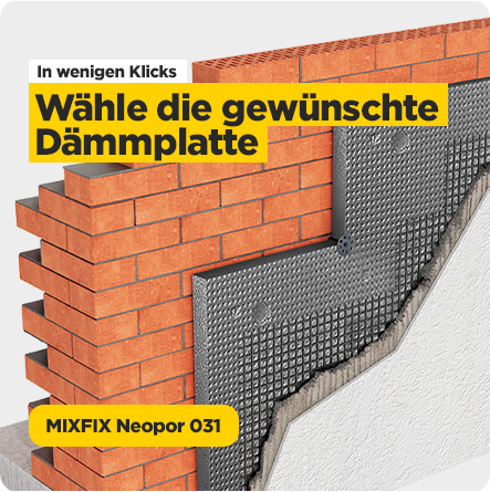 Mit dem Mixfix System Neopor 031 bietet sich eine effiziente Wärmedämmung für Alt- und Neubau. Mit wenigen Klicks kannst du die gesamte Fassade kaufen, indem du die Fläche in Quadratmetern eingibst. Du erhältst sofort eine Übersicht der benötigten Artikel und Mengen, die sich je nach Untergrund und Verarbeitung unterscheiden können. Du kannst die Mengen im Warenkorb nochmals ändern. Das System besteht aus der MIXFIX Klebespachtel A.K.M, MIXFIX Gittergewebe, MIXFIX Putzen, MIXFIX Putzgrund und der MIXFIX Dämmplatte. Das Material EPS ist als flexibler Dämmstoff mit geringer Wärmeleitfähigkeit geeignet und wurde mit der Zeit erweitert, um die grauen Dämmplatten mit noch besserer Wärmedämmung zu schaffen. Die Wahl der richtigen Platte und Stärke kann von einem Energieberater oder Baumeister berechnet werden. Es wird empfohlen, geprüfte WDVS-Systeme zu verwenden, um die dauerhafte Sicherheit und Gewährleistung der kontinuierlichen Qualität zu gewährleisten. Beachte unsere Datenblätter und Sicherheitshinweise!